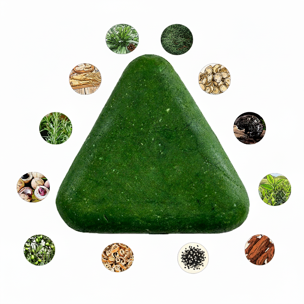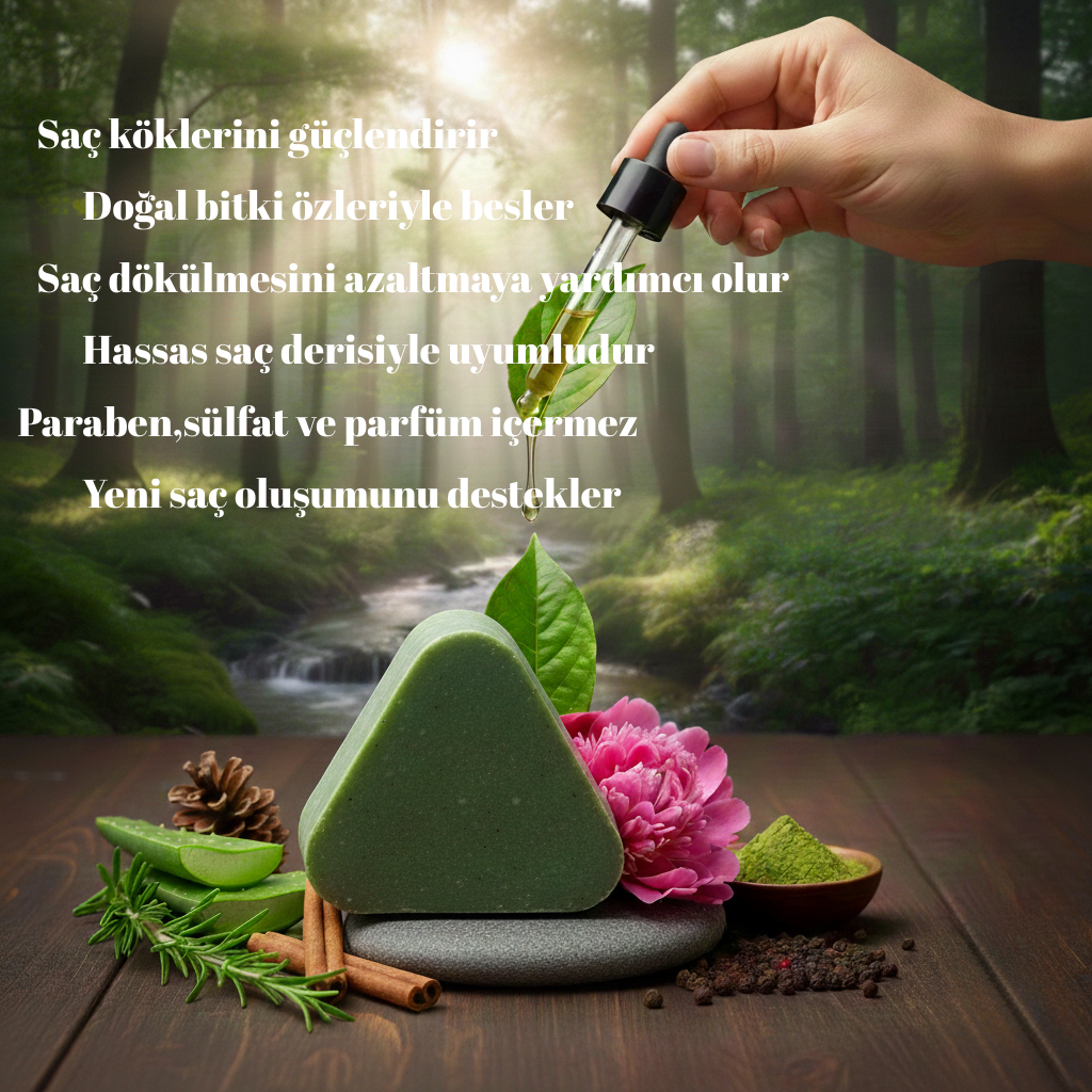Bu özel formül; biberiye, nane, adaçayı, yeşil çay, zencefil, karanfil, siyah susam, ginseng, defne, ısırgan otu ve benzeri bitki özlerinin birleşiminden oluşur. Bu bitkiler saç köklerini canlandırma, kafa derisini besleme, kan dolaşımını hızlandırma ve saç tellerini daha güçlü–daha dolgun hale getirme özellikleriyle bilinir. Doğal antioksidanlar saçın dış etkenlere karşı dayanıklılığını artırırken, mineral ve vitamin bakımından zengin içerikler kökleri derinlemesine besleyerek daha sağlıklı ve canlı bir görünüm sağlar.